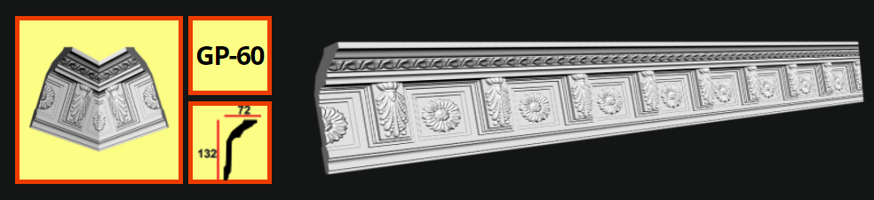 Плинтус потолочный GP-60 &lt;132*72&gt; (12шт)